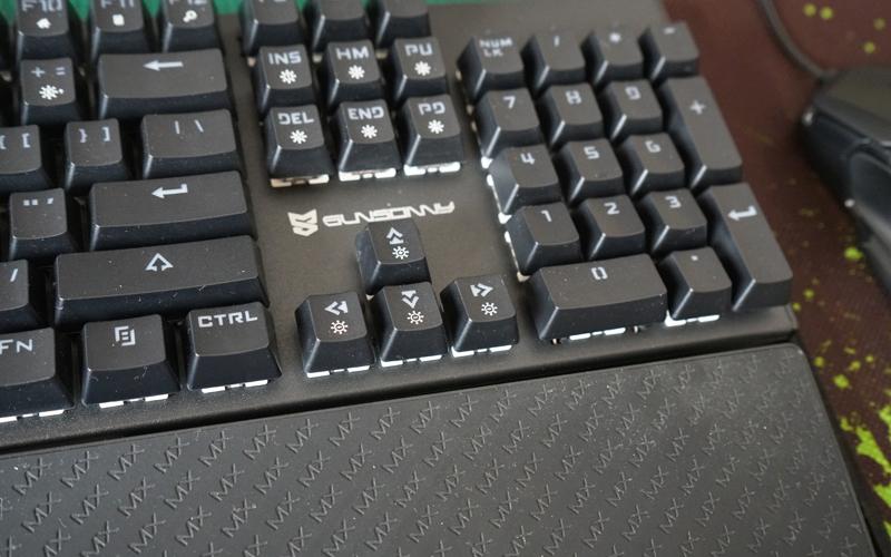 位于方向键上方的 Sunsonny logo 采用机械式字体,简单低调不古板。