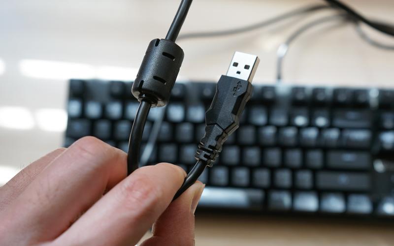 顶部正中出线设计,相交线柔软度很高,非镀金 usb 接口配有屏蔽磁环。