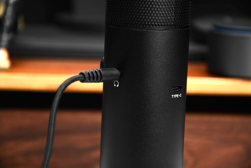 麦克风右侧设计了一个3.5mm音频接口,可以用来连接耳机,通过前面提到的音量键来调节声音大小。