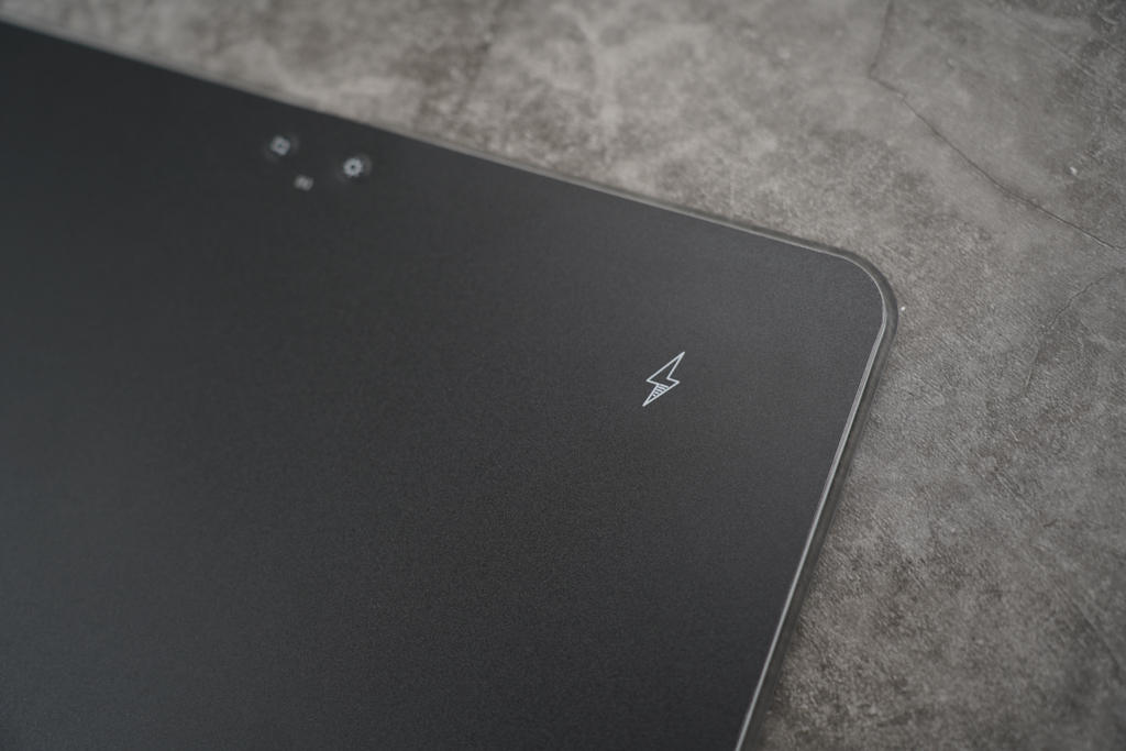 鼠标垫右上角这个位置,是无线充电区域,支持Qi无线充电协议,一般主流的无线充电设备都可以放在这里充电的,甚至包括iPhone手机!