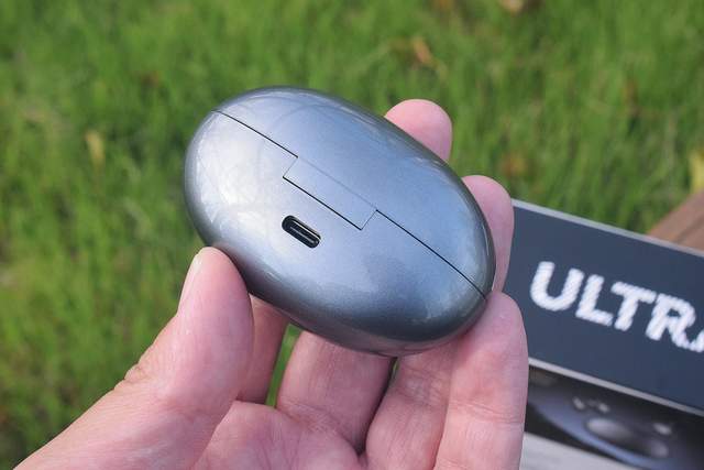 舱身正、背面分别为指示灯及Type-C充电口。充电舱内置的电池容量达到了400毫安,而单耳为50毫安。单次充满可播放8个小时,连上充电舱后其总续航达到了惊人的40小时。以每天使用5-6小时算,一周只需充一次电即可。这在我使用的无线耳机中续航成绩是名列前茅的。
