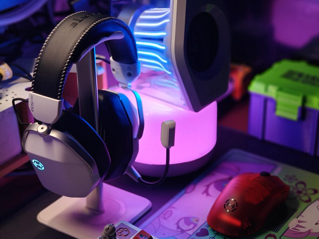 HECATE G5Max无线耳机无线游戏耳机采用舒适的一体式头梁设计,目前宇宙灰、熊猫白、雾光粉和太空银4种配色,本人更喜欢熊猫白,因为跟我桌面上的白色款G3000音箱更搭;