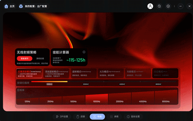 在性能页面,玩家能够在多种无线方案间灵活切换,优化无线射频策略,选择适合自己使用场景的信号强度与稳定性设置。回报率切换功能让玩家可在不同的性能与功耗模式中平衡取舍。