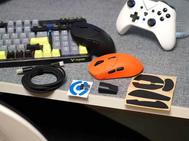 在附件配备上,雷柏VT1二代系列的两款鼠标诚意满满。它们随附了8K带屏蔽高速数据线、USB转接器、“冰感”电竞大脚贴、铁氟龙备用脚垫和Nano接收器。不仅满足了有线/无线使用,还满足了不同场景下的使用需求,为8K高速竞技带来了更舒适顺滑的体验。