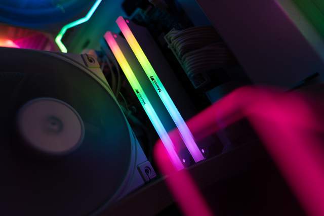 现在选内存,性能要强,“颜值”也得在线!尤其是这种RGB灯条——性能党得到了满足,光污染爱好者更是直接沦陷!你想想,配个侧透机箱,夜里那一抹流光溢彩,氛围感直接拉满……现在的电脑早就不只是工具了,那是桌搭的灵魂,是赛博艺术品!