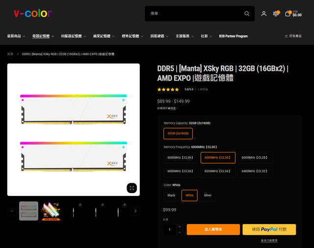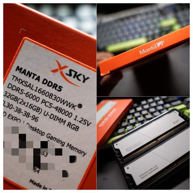 我入手的这款价格相对亲民(该价格为台湾地区官网价格,听说后续品牌方准备在内地电商网站上线了!),是专门针对AMD平台优化的内存条产品,它的全称叫做:v-color全何 Manta DDR5 TMXSAL1660830WWK DDR5-6000 32GB(2x16GB)U-DIMM RGB CL30。太长了~下文简称全何内存吧。