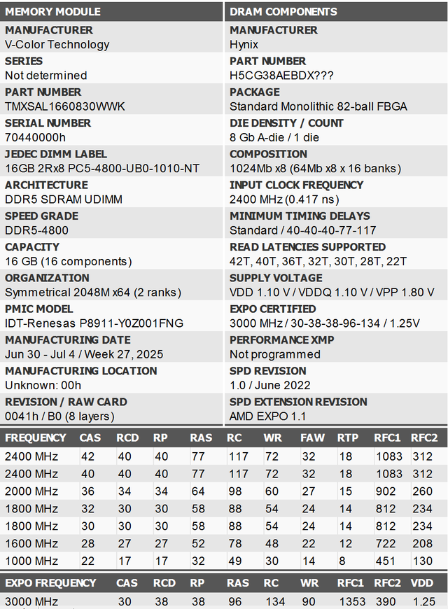 2.体质不错,虽然是4800MHz的基础条,但时序压得挺狠(CL30),颗粒估计是海力士Adie颗粒,超频潜力比那些裸条强多了。