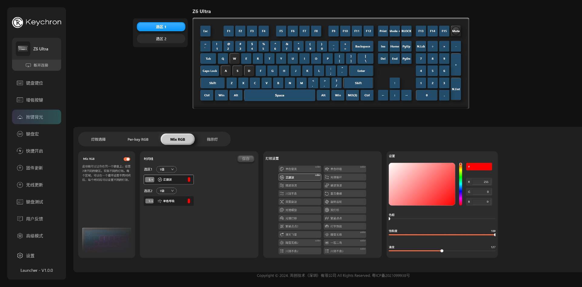 硬件到位,软件不能拉下。Keychron并未使用软件形式,而是直接使用自研网页驱动。这种无需下载,即点即用,完全不受系统、地区、型号的限制,便利性不言而喻。功能可谓是相当齐全,自由分配键位、灯效、宏、固件更新等功能,定制专属个人的键盘布局,操作简单直观。