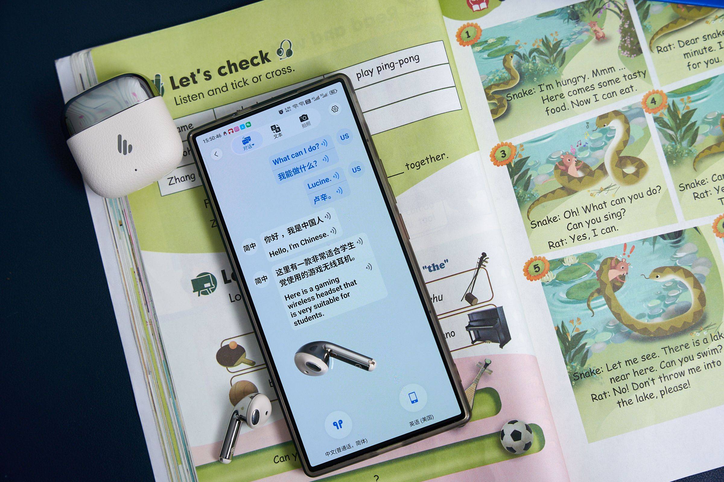 随便一测,真的可以!戴着耳机说英语,屏幕会自动识别成英文并翻译成中文,耳机再用汉语“讲”给我听;对着手机说中文,屏幕会自动识别成中文并翻译成英文,手机喇叭用英语“讲”给出来;这就完美契合了对话场景,非常实用。不仅有中英互译,漫步者耳机还支持21种语言翻译,应付出国旅行完全没问题。