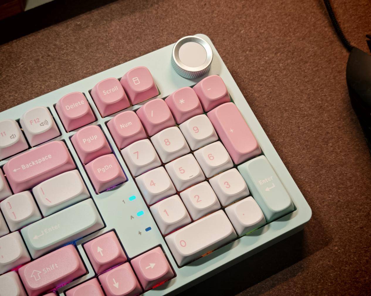 对于很多小伙伴来说,最爱玩的就是键帽,多彩的键帽显得桌面也很有生气。SKN青龙4.0 Ultra采用原厂高度双色注塑PBT材质,1.5mm加厚壁处理,表面细磨砂触感,字符闭口工艺透光均匀。实测耐磨性优异,指甲反复刮擦无痕迹,长时间游戏后键帽表面仍保持干爽。