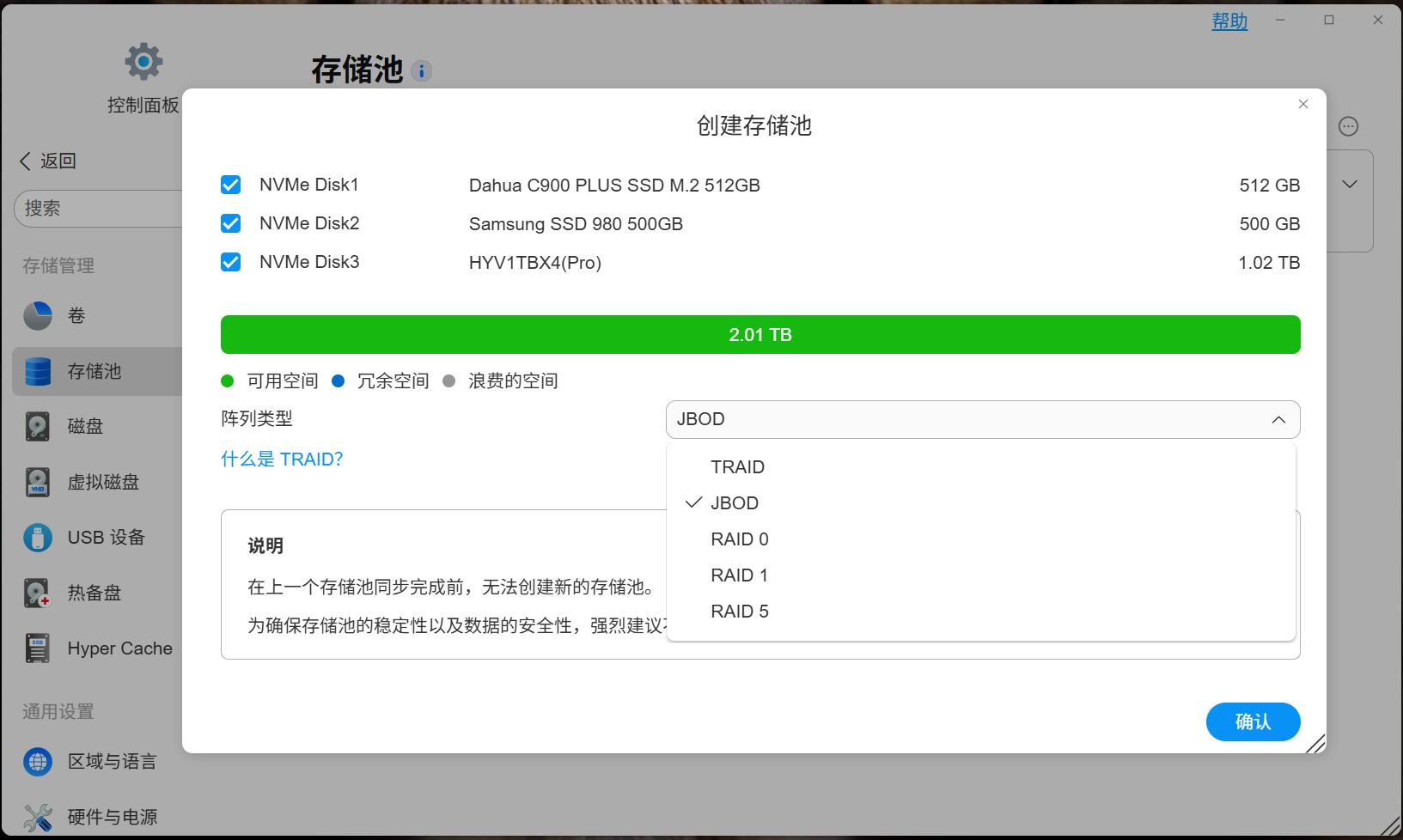 可以同时组成一个RAID 5的存储池,兼顾固态硬盘的高速读写性能和数据安全。