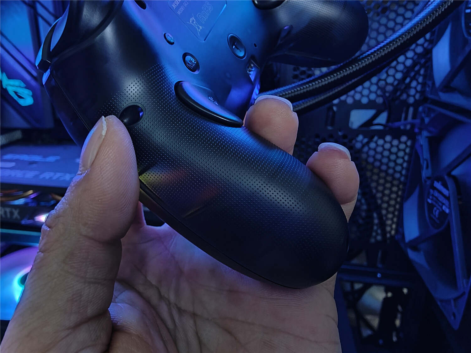 GC1在握持体验上的设计也别具一格。手柄机身采用轻量化设计,仅重214g,配合人体工学的握角设计和NanoSkin亲肤材质,提供了极佳的舒适感和稳定性。